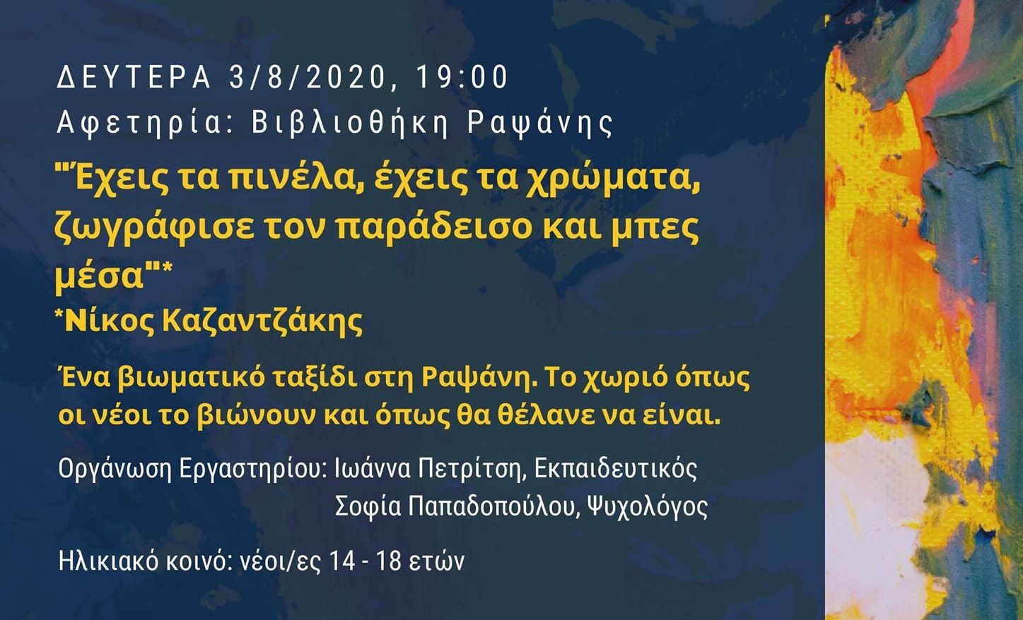 Στις 3 Αυγούστου πραγματοποιήθηκε το κοινωνιοδραματικό εργαστήριο με τη συμμετοχή 9 εφήβων που περνούν τα καλοκαίρια τους στη Ραψάνη.
